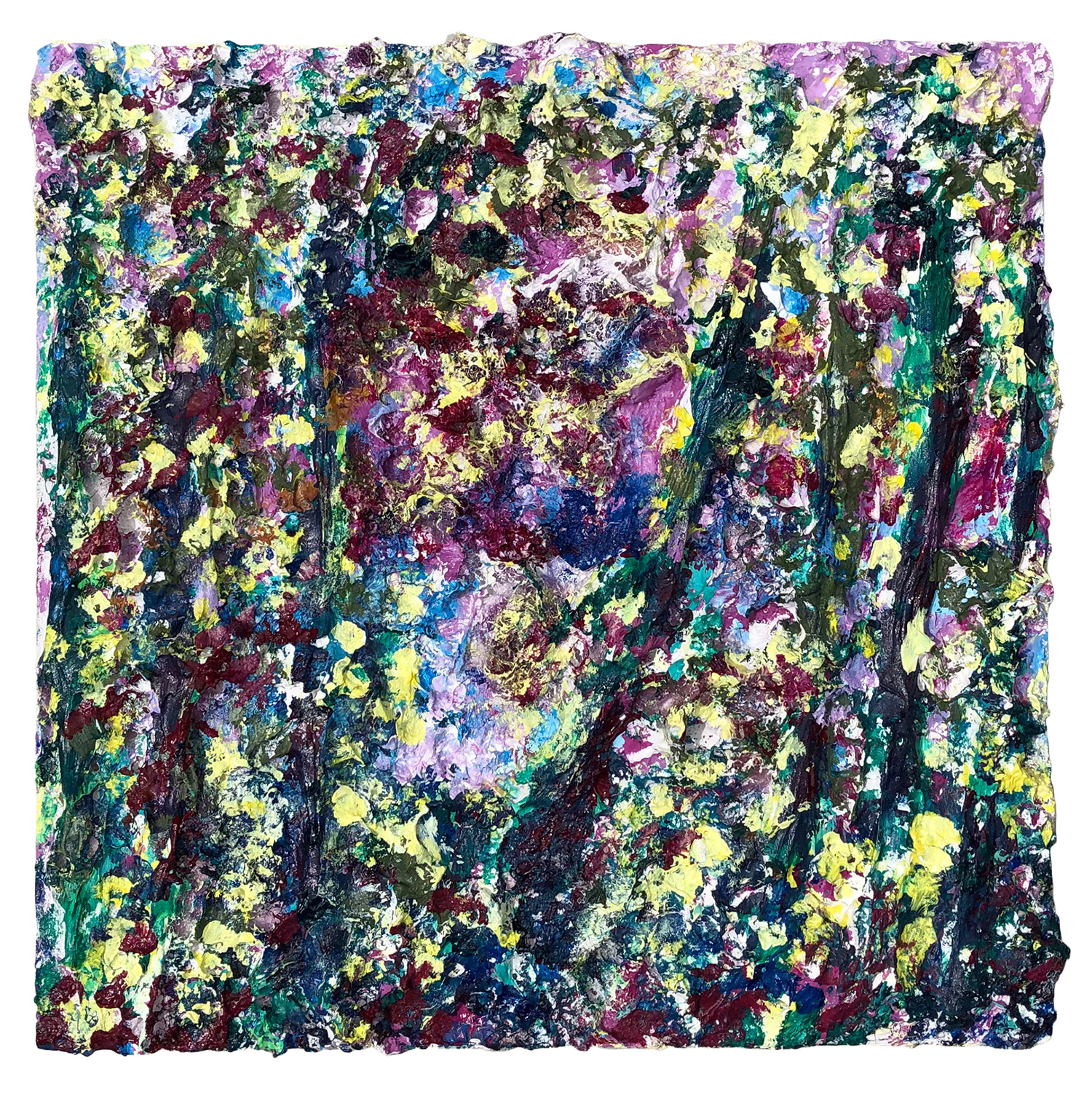 Acrylic Paint, Yarn, and Joint Compound on Board, 2021, 12"x12"