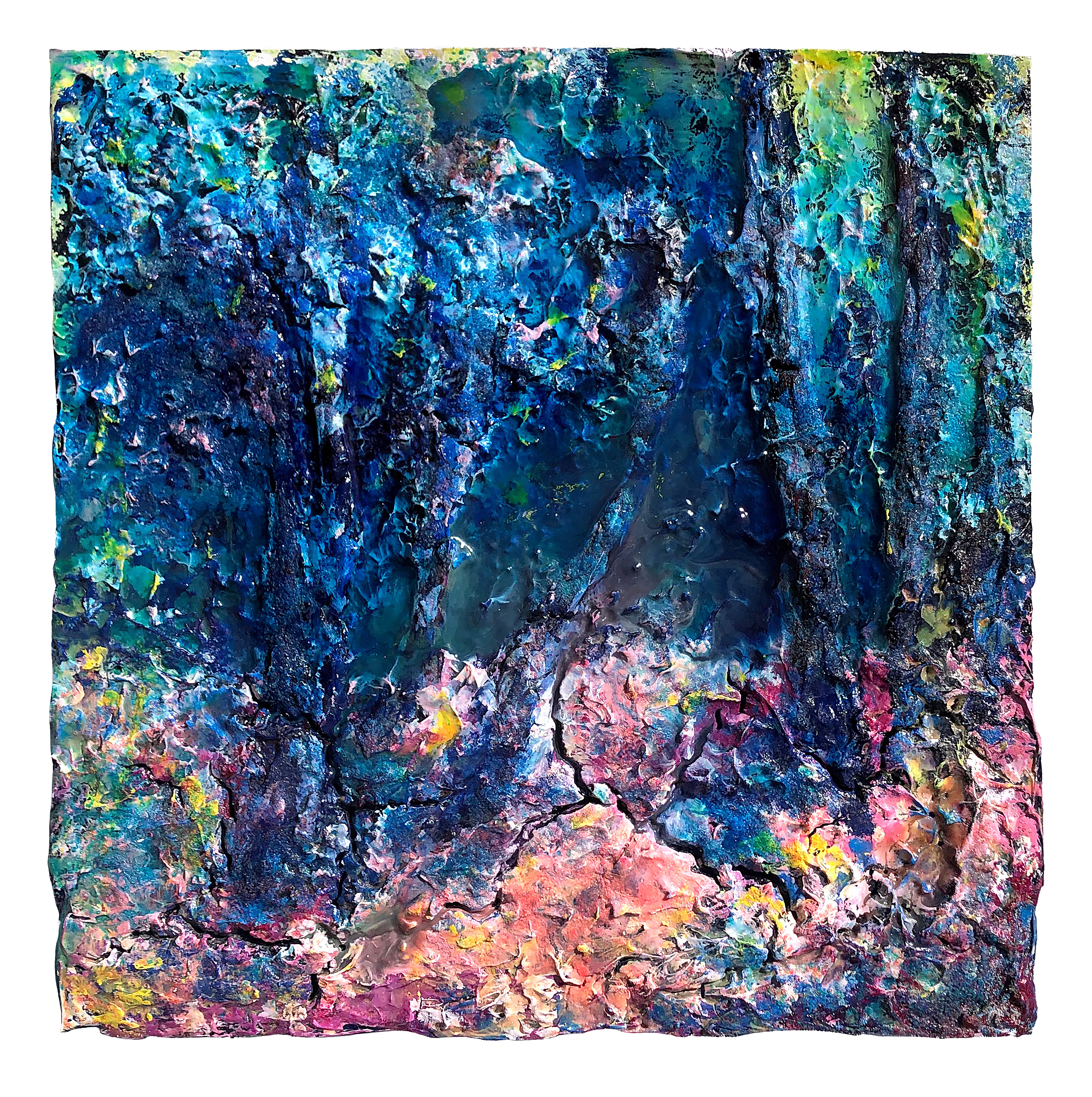 Acrylic, Joint Compound, and Sugar with Glue on Board, 2020, 24"x24"