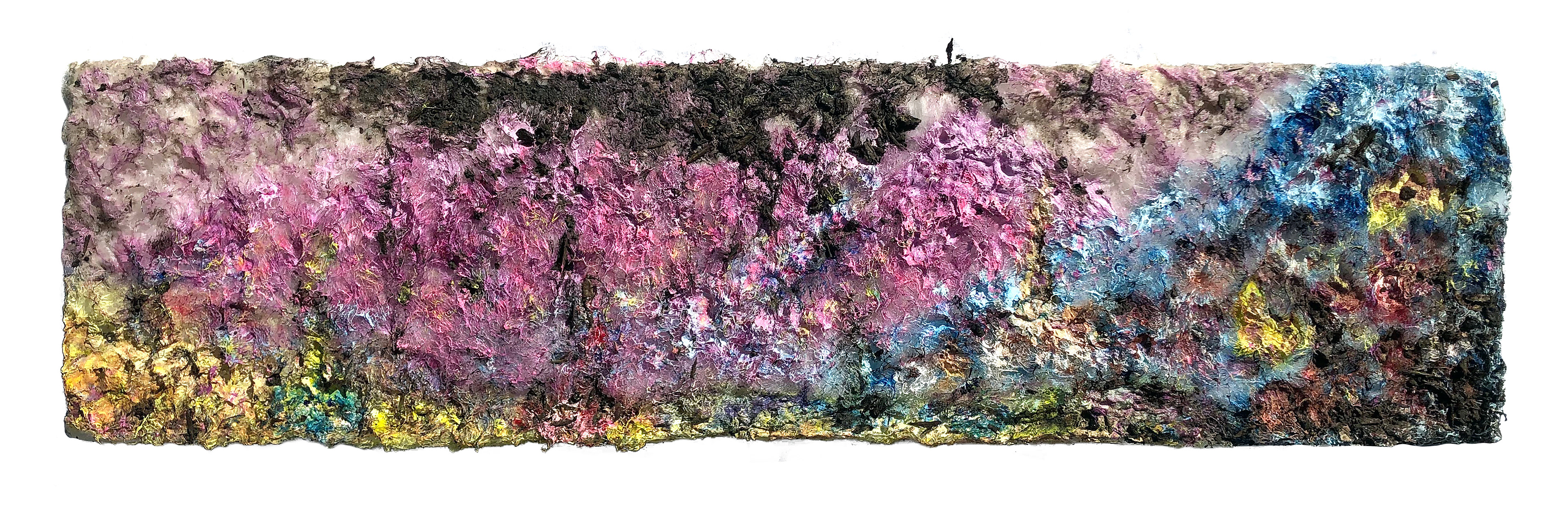 Acrylic, Glue with Dirt, and Faux Fur on Board, 2019, 48"x12"